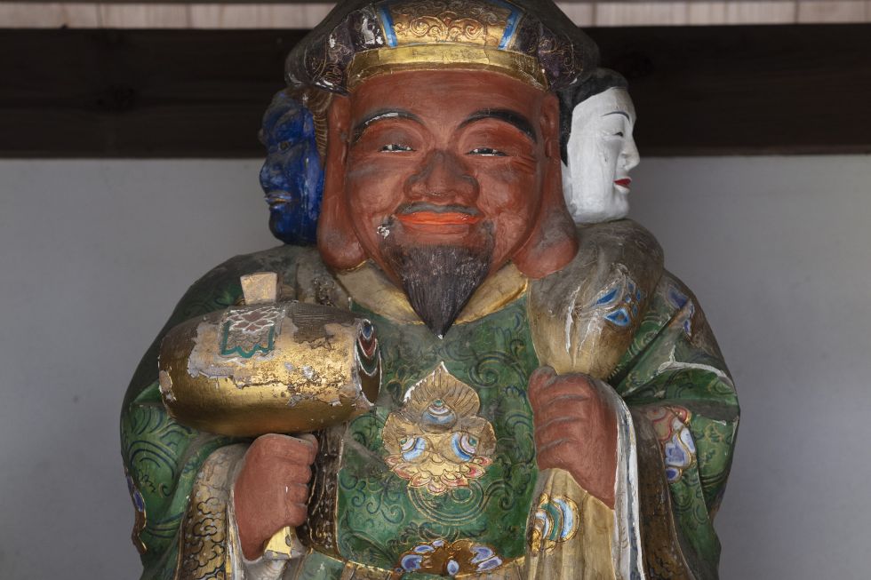 The fundamental place of practice where monks do zazen, sleep, wake up, and take meals. Monju Bosatsu (Manjusri Bodhisattva), characteristic seated statue with a face on the right side, and three-faced Daikokuten Statue, Daikokuten (Mahakla), Bishamonten (Vaisravana), and Benzaiten (Sarawati) are enshrined. In Sodo, we offer Zazen and sutra tracing experiences, services, and lectures.
